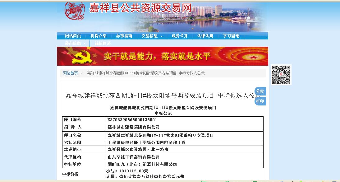 工程名稱:嘉祥城建祥城北苑四期1#-11#樓太陽能采購及安裝項目 項目說明:該項目為嘉祥城建祥城北苑四期1#-11#樓太陽能采購及安裝項目,共612臺壁掛太陽能。 招標單位:嘉祥城市建設集團有限公司 建設地點:嘉祥縣城區建設路西,北一路南