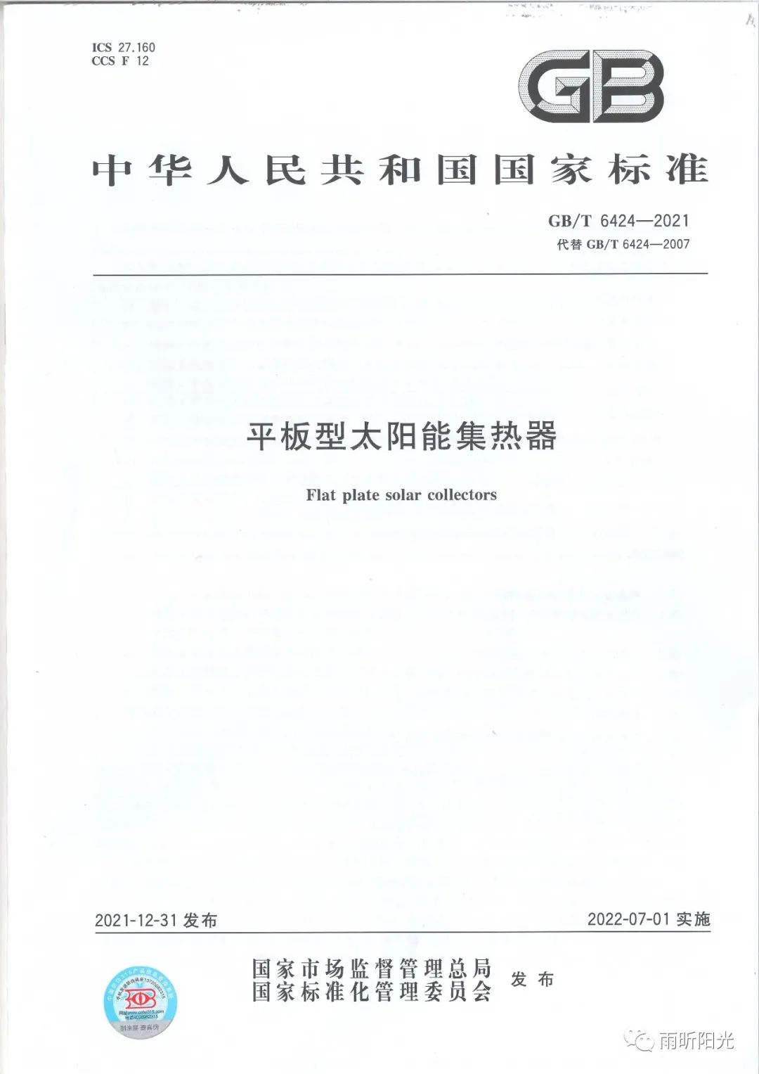 集熱器》已于2021年12月31日發布,將于2022年7月1日實施。